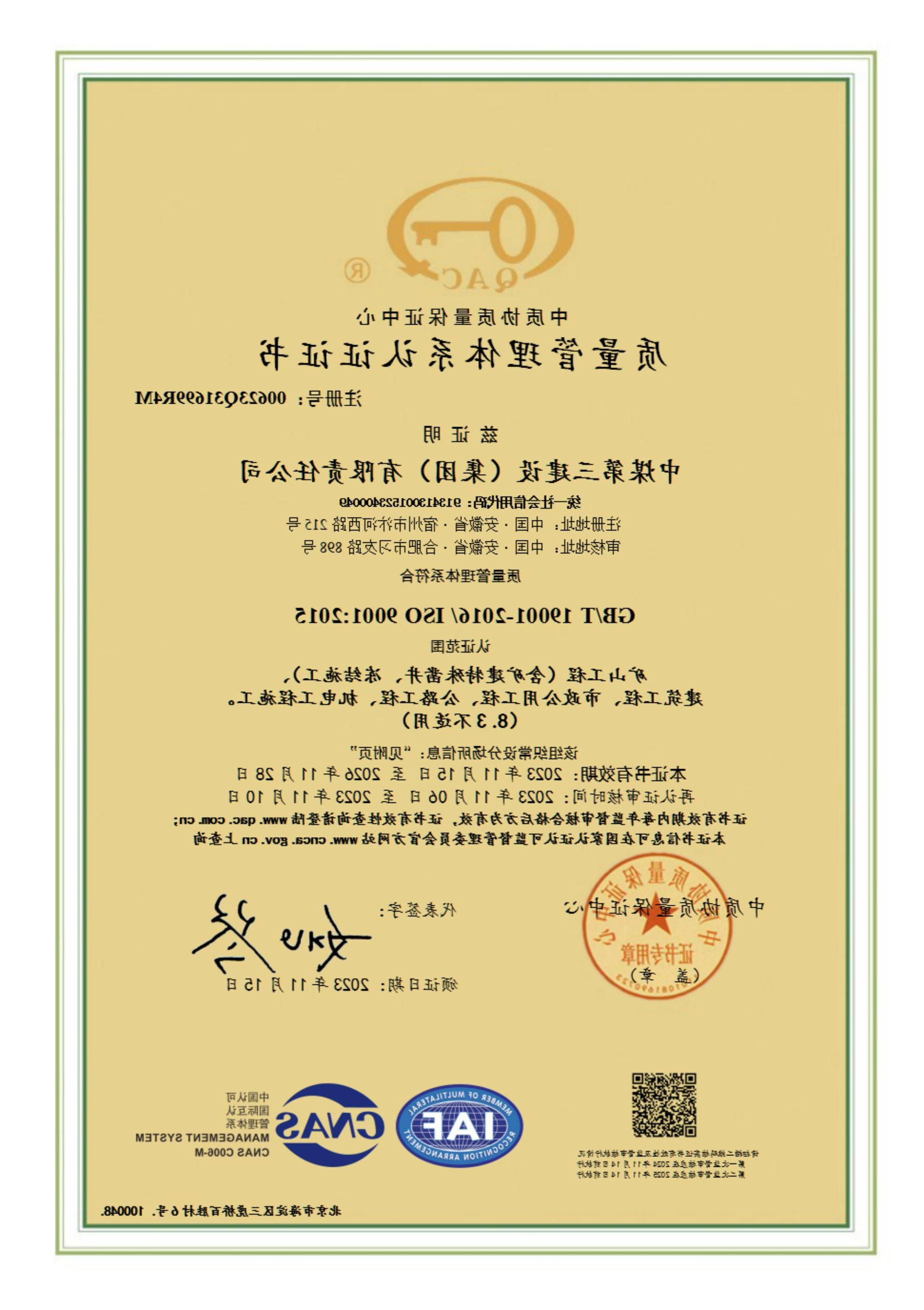 质量管理体系(50430)认证证书