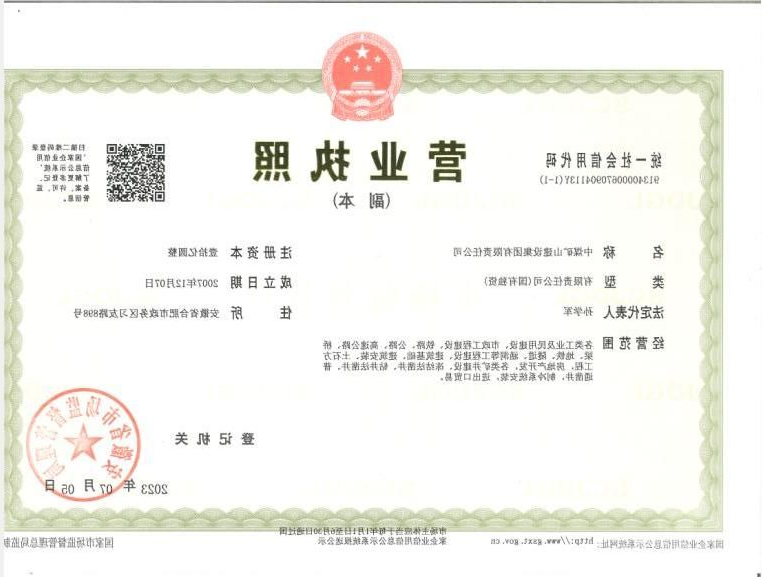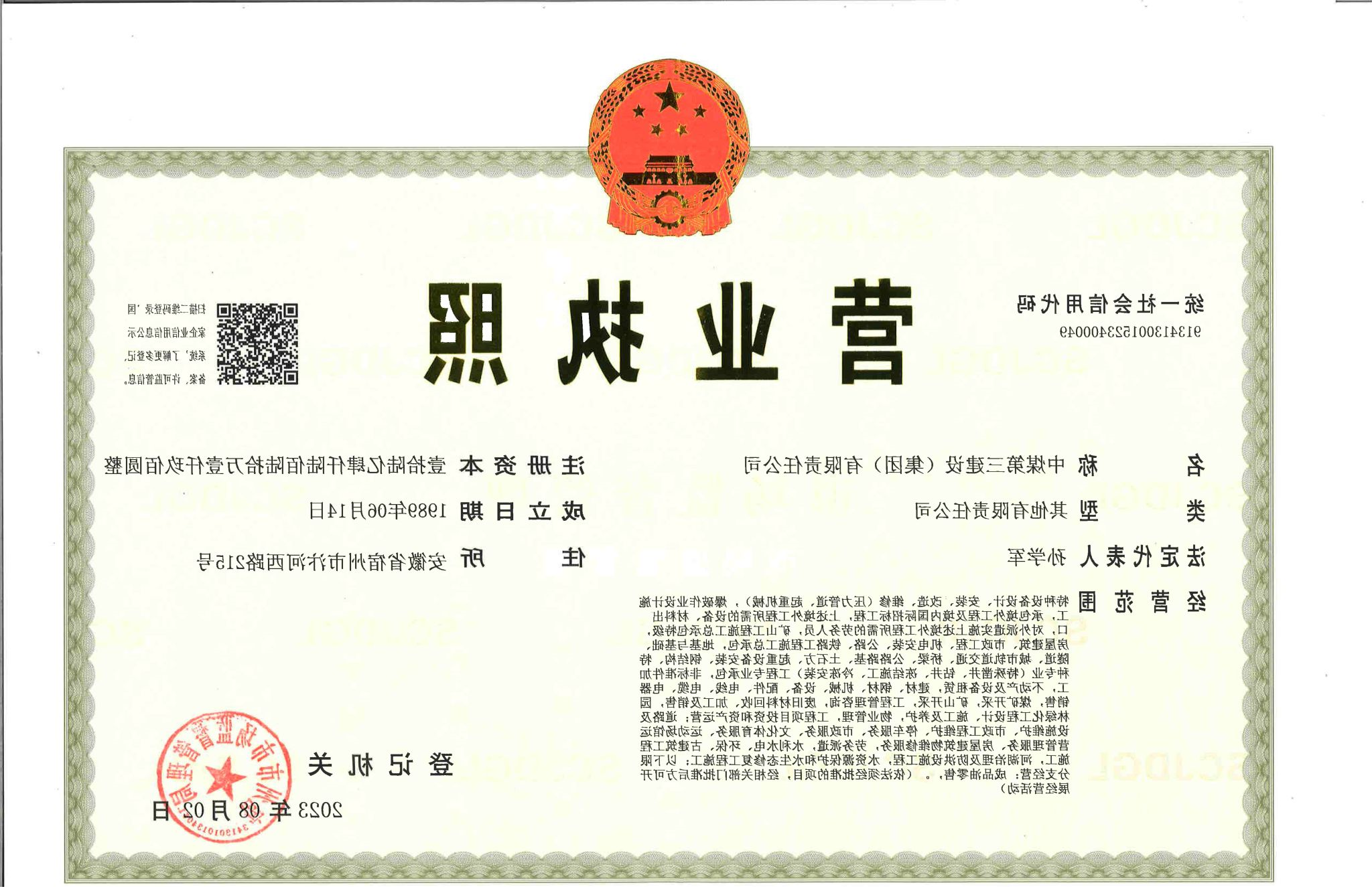 中煤三建集团资质证书副本